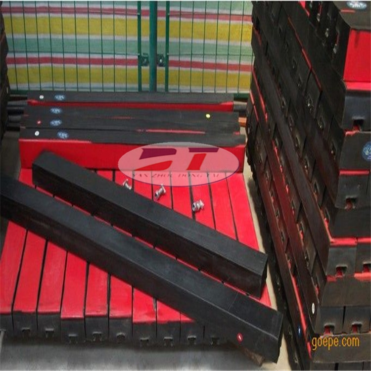 聚乙烯緩沖條應用彈性橡膠層充分有效吸收了物料下落時的沖擊力,大大降低了物料下落時對輸送帶的沖擊,真正的落料點的受力狀況。并采用特殊的 UHMW高分子聚乙烯表面,使輸送帶與緩沖條之間的摩擦系數降到底,且耐磨性好。緩沖條的使用保證了輸送帶的面與面的接觸,受力均勻,由于托輥斷裂、脫落造成的皮帶縱向撕裂,同時大大降低了皮帶被銳器或尖銳物料穿透后縱向撕裂的概率 。