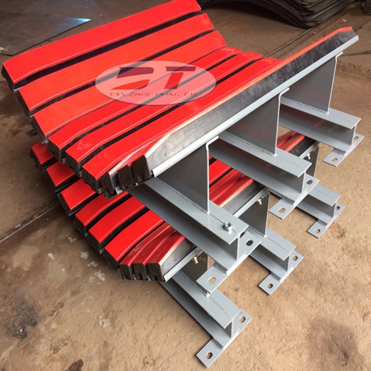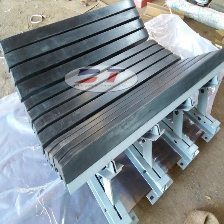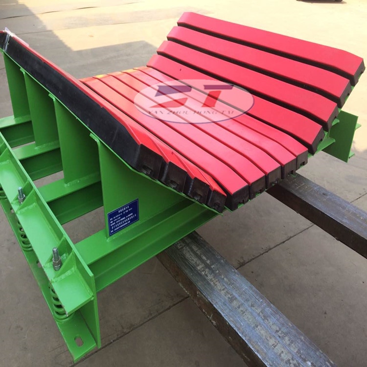 緩沖床采用特殊的UHMW高分子聚乙烯表面,使輸送帶與緩沖條之間的摩擦系數(shù)降低,且耐磨性好。緩沖床的使用保證了輸送帶的面與面的接觸,受力均勻,有效了由于托輥斷裂、脫落造成的皮帶縱向撕裂,同時(shí)大大降低了皮帶被銳器或尖銳物料穿透后縱向撕裂的概率。