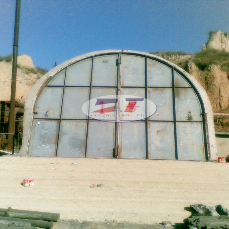 斜風井防爆門作用是當?shù)V井下發(fā)生爆炸時,沖擊波將該門向外沖開,起到釋放并緩解斜風井沖擊波的作用。