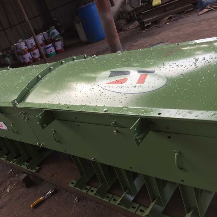 導(dǎo)料槽可分為加防溢裙板型和全封閉型;如果是全密封型,由上中下三部分組成,中間側(cè)板與輸送機(jī)機(jī)架連接,為固定部分,上頂蓋及下底板分別同側(cè)板通過(guò)螺栓連接,可很方便的進(jìn)行拆卸,以便安裝和維修。