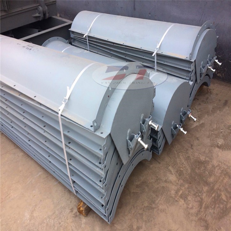 導料槽可分為加防溢裙板型和全封閉型,都可其他防塵的效果;如果是全密封型,由上中下三部分組成,中間側板與輸送機機架連接,為固定部分,上頂蓋及下底板分別同側板通過螺栓連接,可很方便的進行拆卸,以便安裝和維修。