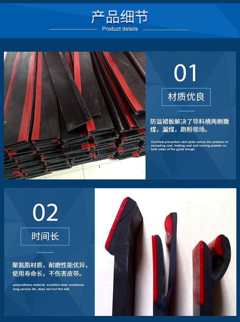 導料槽裙板,雙層防溢裙板,聚氨酯擋煤皮,Y型防溢裙邊